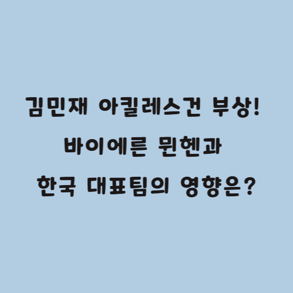 축구 팬들에게는 안타까운 소식이 전해졌습니다. 바이에른 뮌헨의 핵심 수비수 김민재 선수가 아킬레스건 부상을 당해 경기에 나서지 못하게 되었습니다. 😢 그의 부재로 인해 바이에른 뮌헨과 대한민국 대표팀의 전력에도 큰 변화가 예상됩니다.