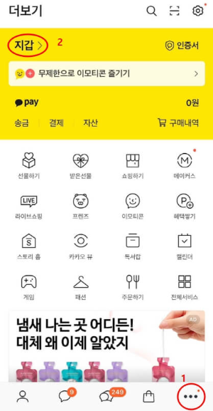 지갑 메뉴 선택