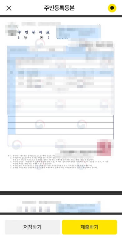 주민등록등본 저장 및 제출
